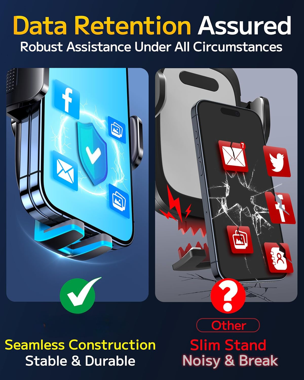 This premium car phone mount offers unmatched stability and versatility for all your driving needs. Its 360° adjustable design ensures an optimal viewing angle for navigation, calls, or music. The dual-compatibility base can be securely attached to your dashboard, air vent, or windshield, adapting to any vehicle interior. Heat-resistant materials, it protect your device while offering effortless one-hand operation for quick adjustments.