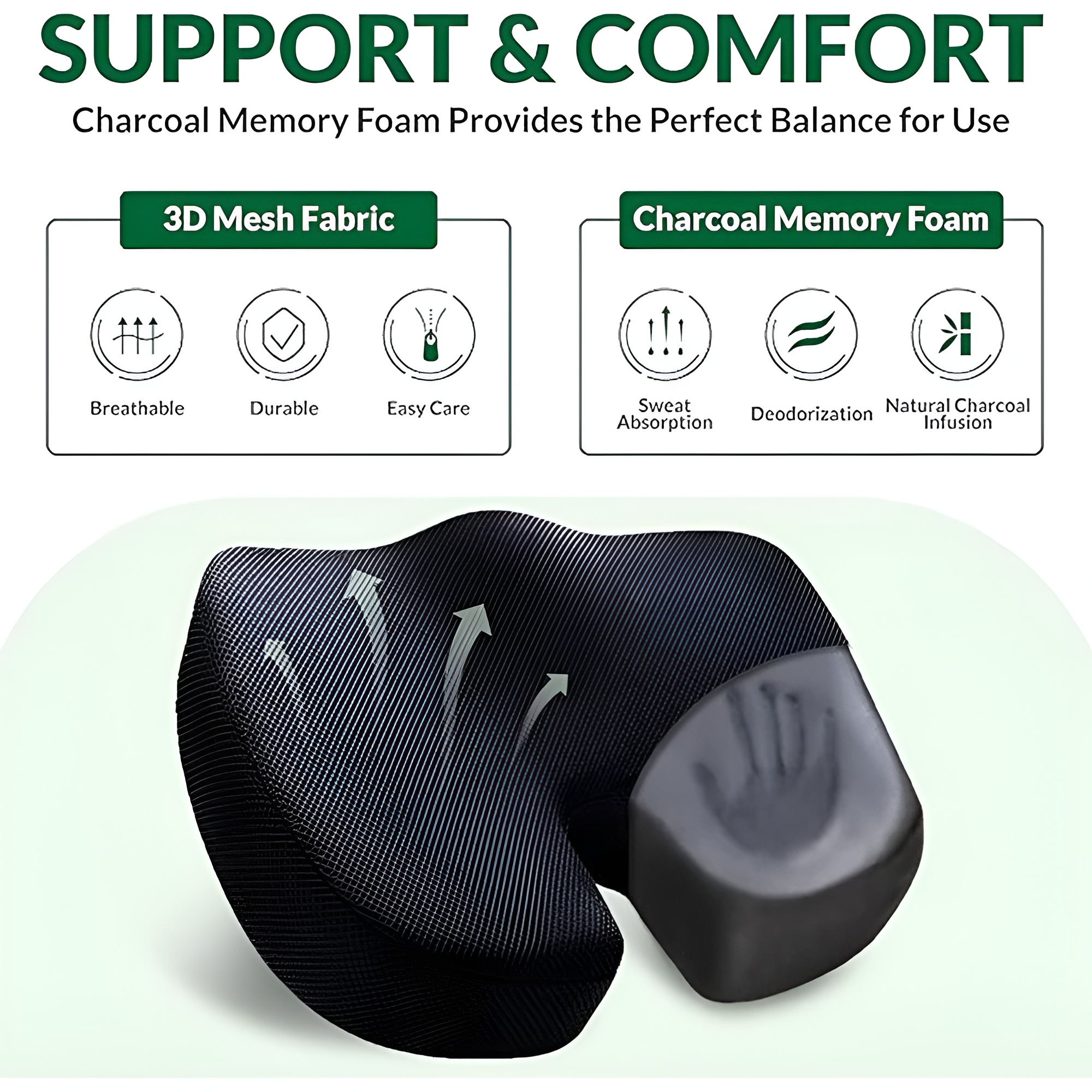 Crafted from high-density memory foam, the cushion responds to pressure and contours to the seating position, allowing improved comfort during daily use. The ergonomic cut-out design promotes proper posture and helps reduce pressure in sensitive areas during prolonged sitting.