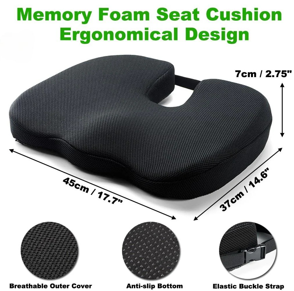 Designed for extended sitting comfort, this cushion helps distribute weight evenly while minimizing strain on sensitive areas. The molded memory foam adapts to your shape, providing balanced support without collapsing over time. Its compact profile makes it easy to carry between work, car, and home environments. The airy cover allows airflow to prevent overheating during long use. Ideal for daily commuters and office workers, it transforms rigid seating into a surface. The ergonomic cut-out promotes natural posture, helping reduce pressure buildup throughout the day. Whether used for short trips or full workdays, this cushion offers consistent support and reliable comfort.
