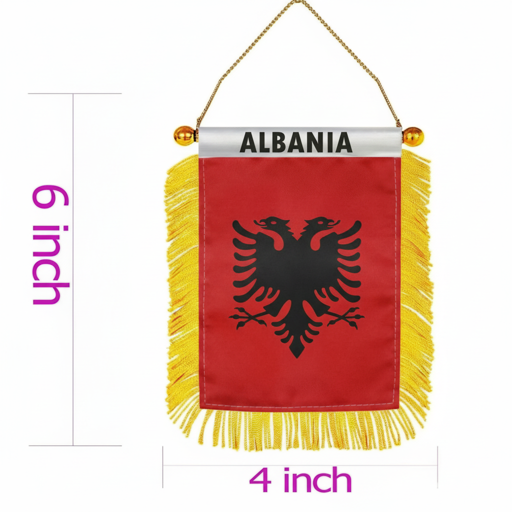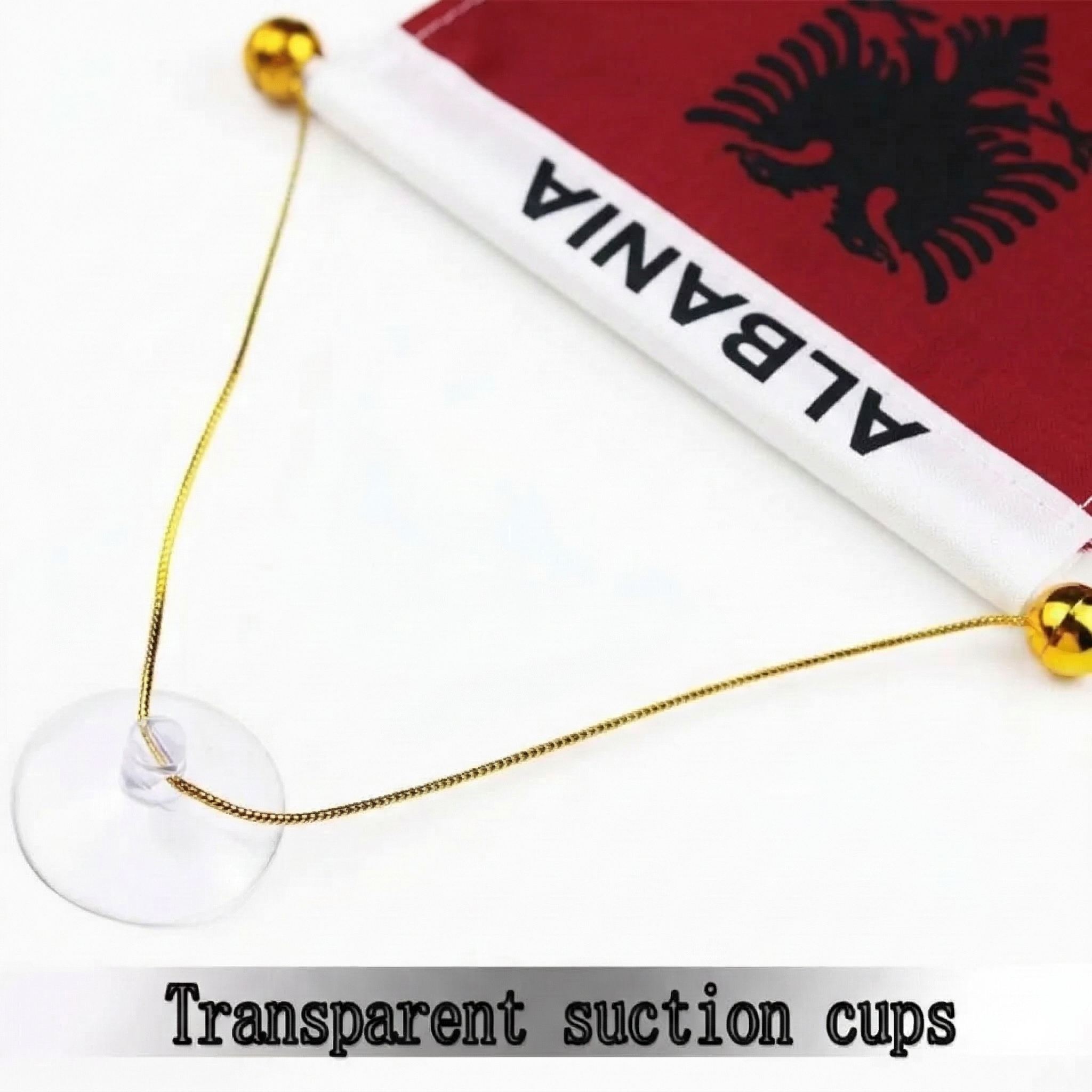 This Official FIFA 2026 Albania Car Window Mini Decorative Flag is a compact decorative accessory designed for vehicles and interior spaces. Measuring 4 x 6 inches, the mini double-sided banner displays the red and black national flag design clearly from both sides. The lightweight construction supports stable placement on glass surfaces without affecting normal vehicle use. Made from satin fabric, the flag maintains color visibility during regular exposure to sunlight. The compact size makes it suitable for car windows, mirrors, desks, and interior decorative display during events and celebrations.