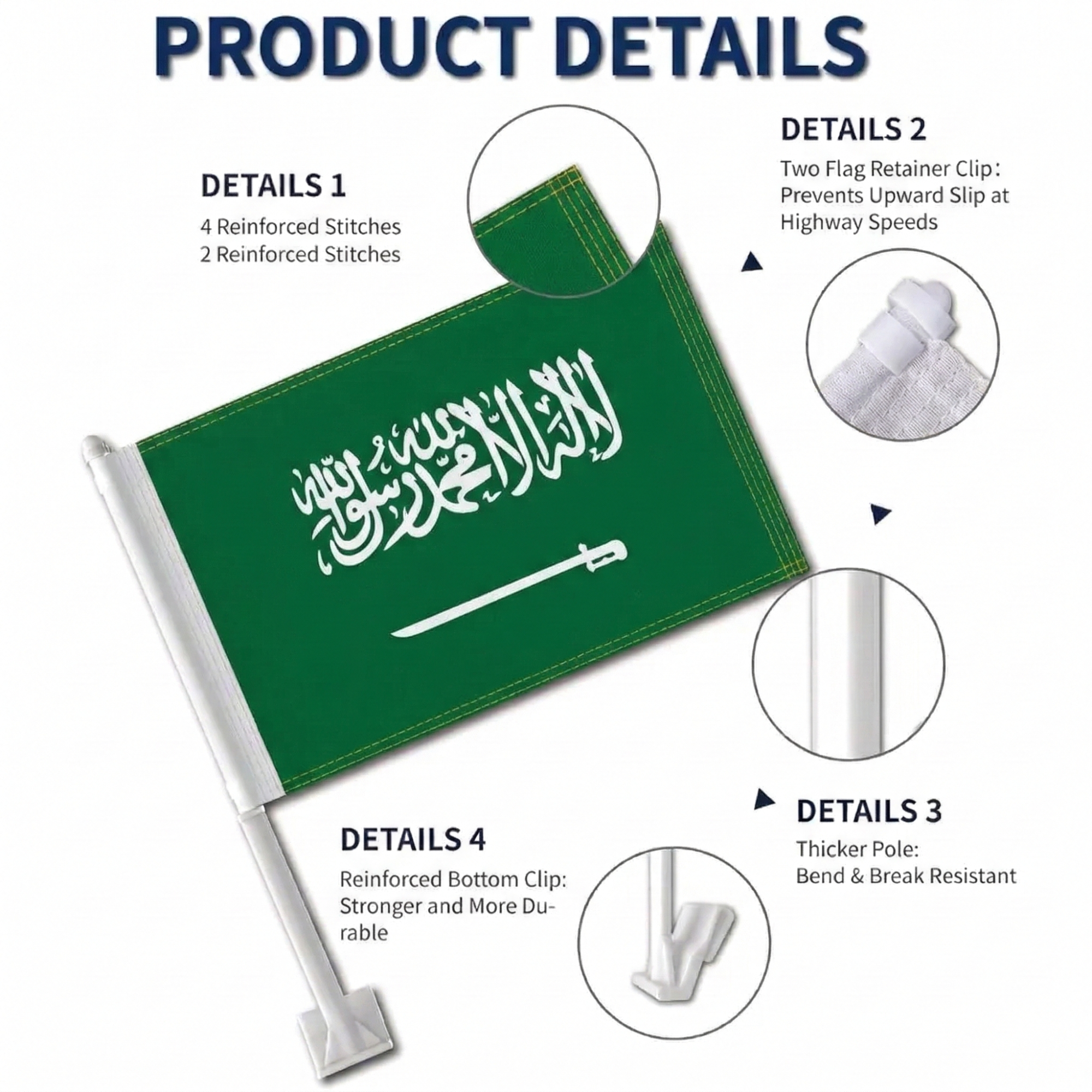 The Official FIFA 2026 Saudi Arabia Car Flag is designed for vehicle window display during sporting events, parades, and national celebrations. Each flag measures 11 × 17 inches and is made from two-layer warp-knit polyester that provides structure compared with lightweight fabric.