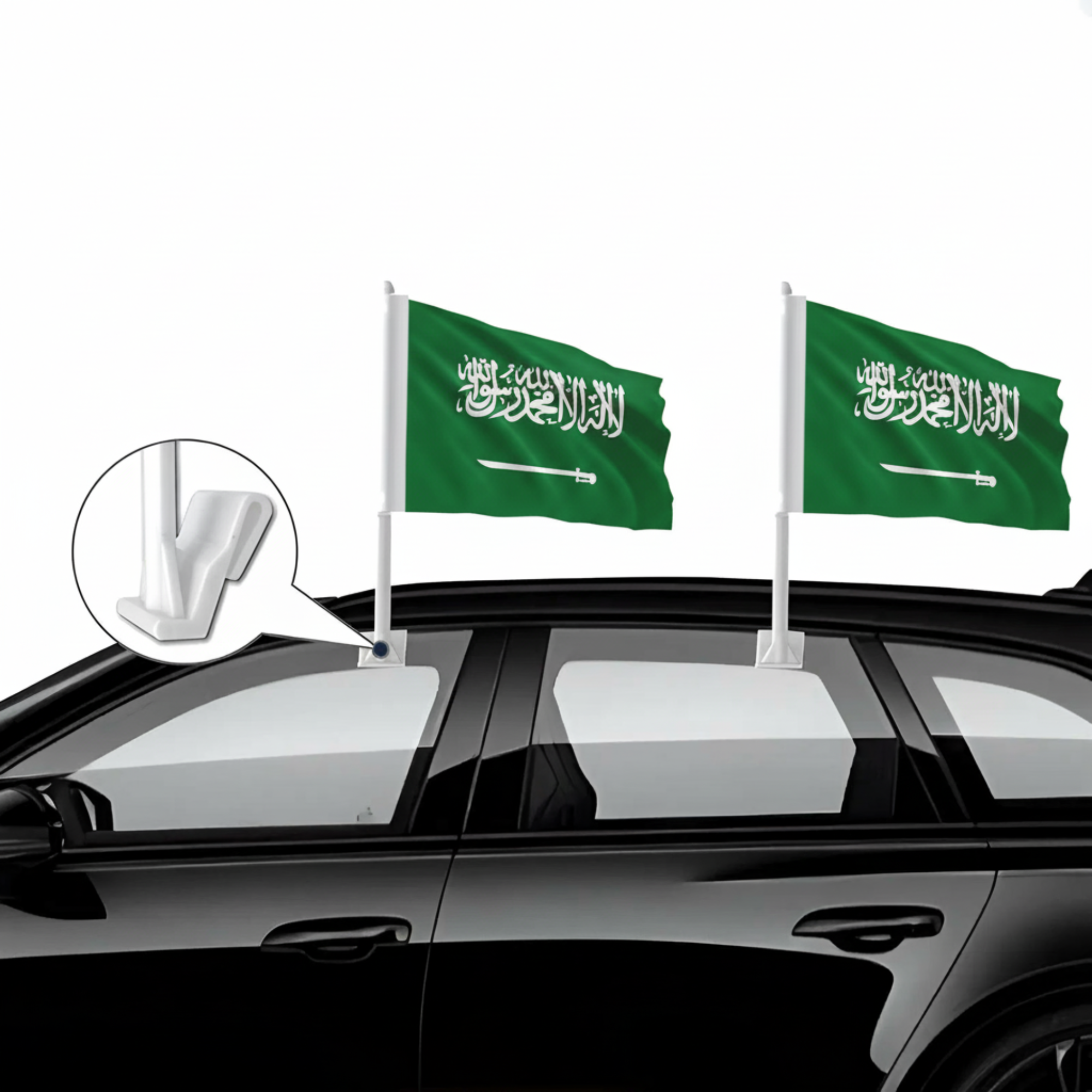 Double-sided printing allows the Saudi Arabia design and colors to appear clearly from both directions instead of a mirrored image. The material performs well in road wind and changing outdoor conditions, making it suitable for regular vehicle display.