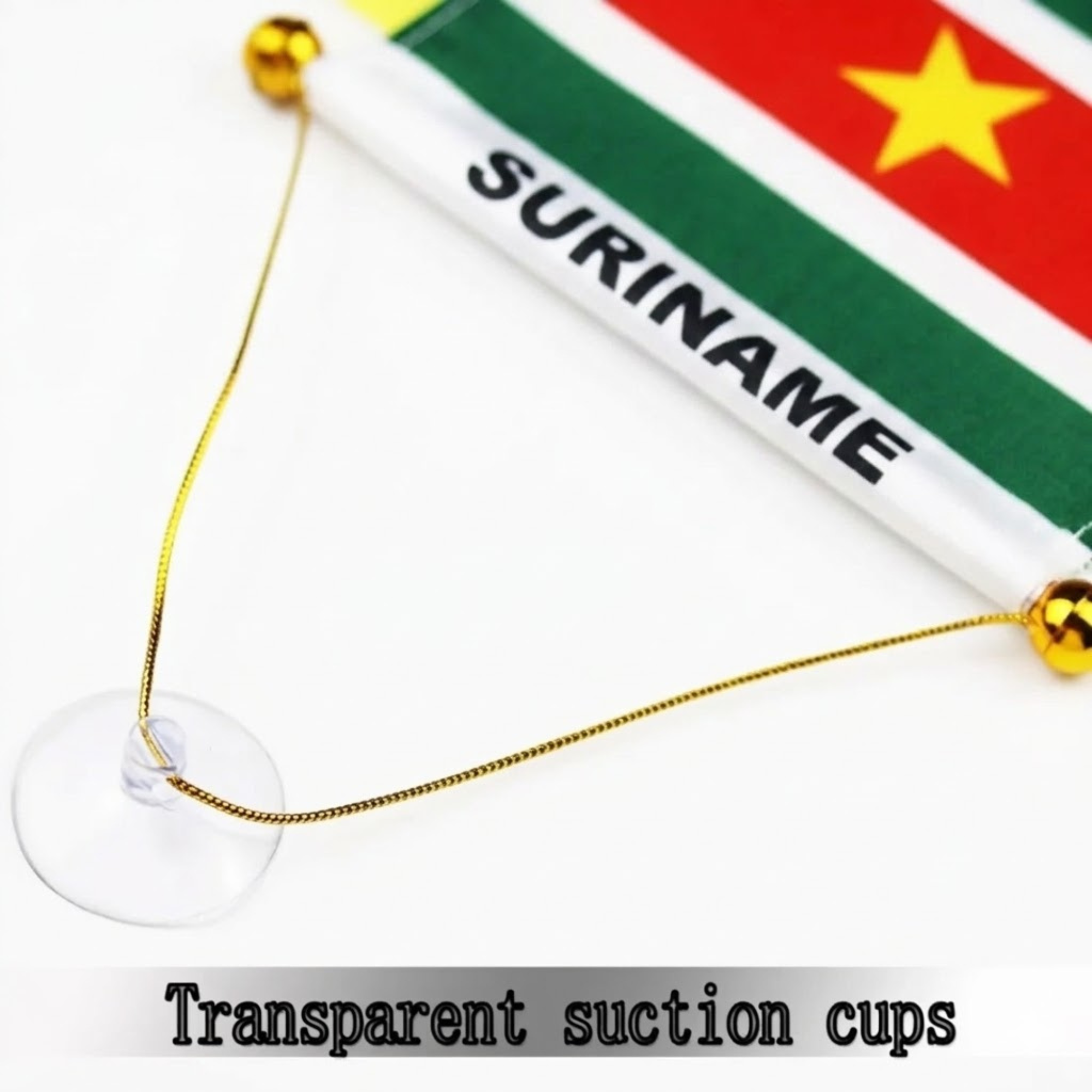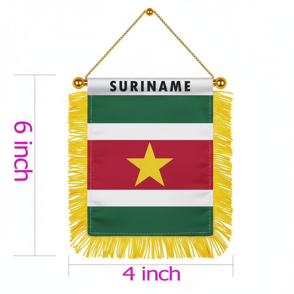This Official FIFA 2026 Suriname Car Window Mini Decorative Flag is a compact decorative accessory designed for vehicles and interior spaces. Measuring 4 × 6 inches, the mini double-sided banner displays the recognizable Suriname flag with green, white, and red horizontal stripes and the central yellow star clearly visible on both sides. Designed to add a national accent to personal spaces, this decorative flag is suitable for sports tournaments, national celebrations, cultural events, and everyday decoration. Its lightweight construction supports stable placement without interfering with normal use, while fade-resistant and UV-resistant dyes help maintain color clarity over time. The compact size allows convenient placement on vehicle windows, mirrors, desks, or other glass surfaces for a small decorative display.