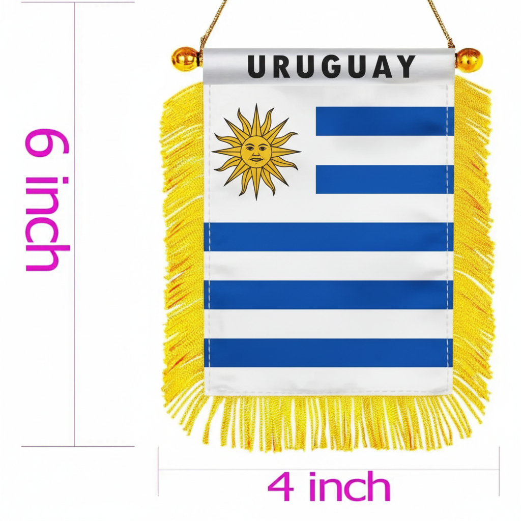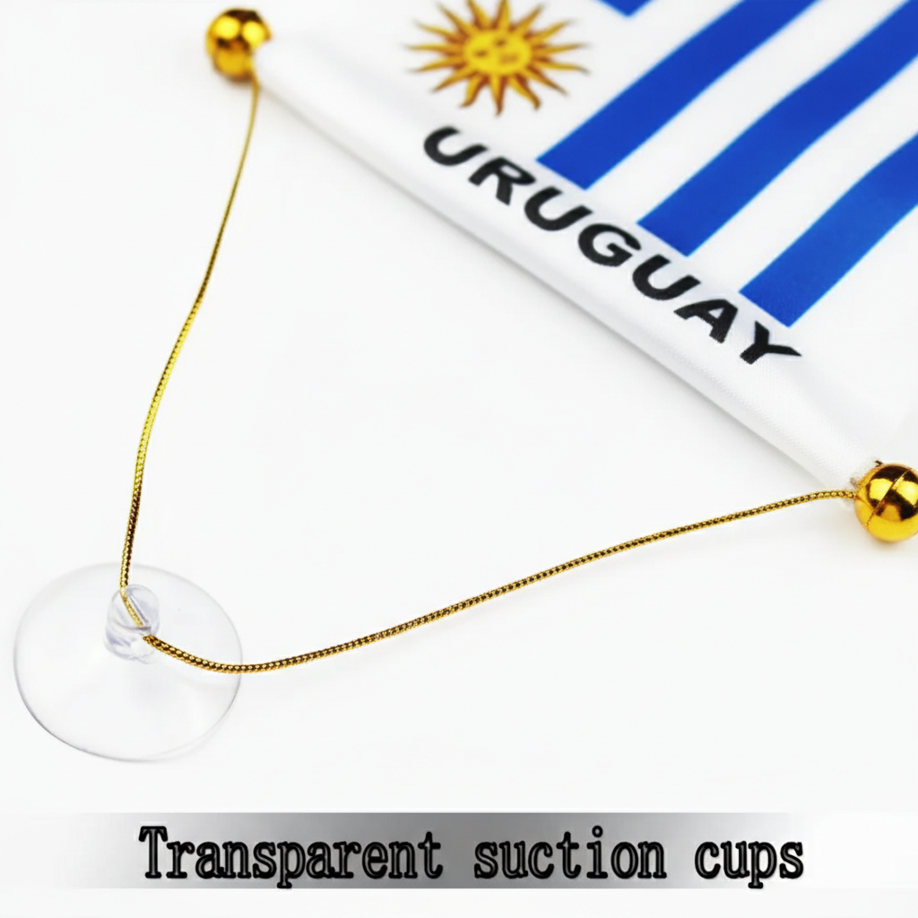 This Official FIFA 2026 Uruguay Car Window Mini Decorative Flag is a compact decorative accessory designed for vehicles and interior spaces. Measuring 4 × 6 inches, the mini double-sided banner displays the recognizable Uruguay flag with light blue and white stripes and the golden Sun of May emblem clearly visible on both sides. Designed to add a national accent to personal spaces, this decorative flag is suitable for sports tournaments, national celebrations, cultural events, and everyday decoration. Its lightweight construction supports stable placement without interfering with normal use, while fade-resistant and UV-resistant dyes help maintain color clarity over time. The compact size allows convenient placement on vehicle windows, mirrors, desks, or other glass surfaces for a small decorative display.