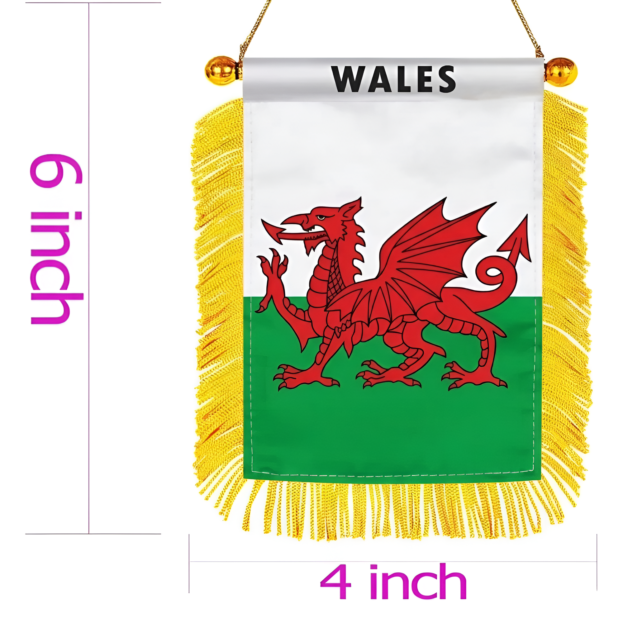 - 4 x 6 inch double-sided Wales flag design