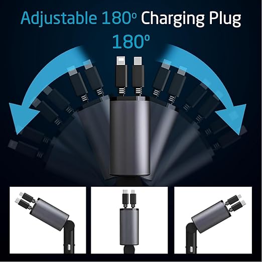 Experience fast and efficient charging with this Retractable Car Phone Charger charger has 120W 3-in-1 Charging Cable. Designed for multiple devices, including iPhones, Android smartphones, and Type-C gadgets, this versatile cable offers quick charge compatibility and a compact, tangle-free design.